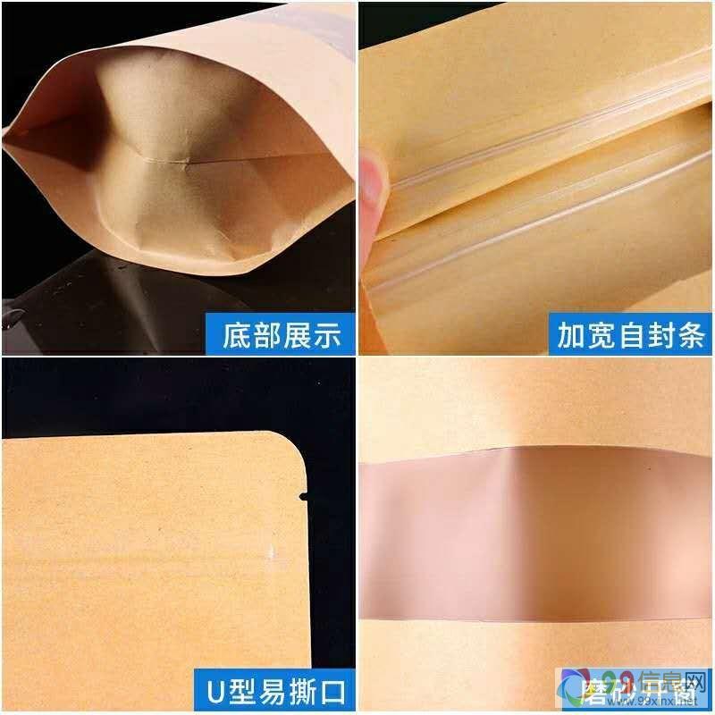 开窗牛皮纸自封袋主要将牛皮纸,PE膜 [4] (用普通设备制作夹链自封袋 [5] ),哑光磨砂膜,通过复合工艺将这几种材料压合在一起,形成美观大方的具有磨砂可视的复合袋 [6] 包装袋9~9~信~息~网。不开窗牛皮纸自封袋主要铝膜,牛皮纸,磨砂PE膜三层复合在一起,形成不可视不开窗口袋。八边封牛皮纸自封袋是通用模具将袋型做成立体包装袋,因牛皮纸立体袋有八条边而得名“牛皮纸八边封袋”www.99xinxi.net99信息网。